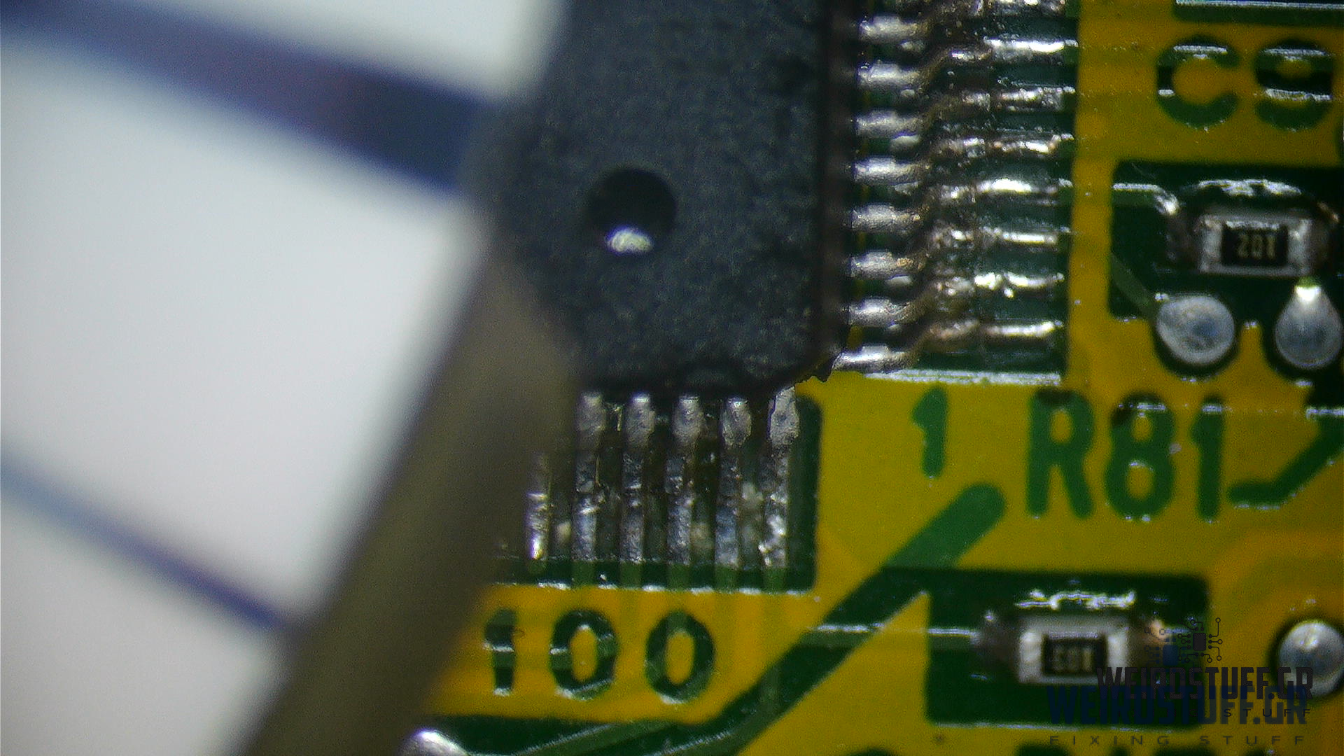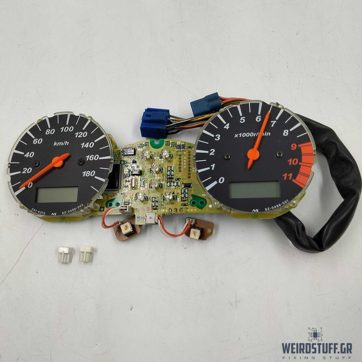 Μας ήρθε ένα νεκρό καντράν/Κοντέρ από ένα GSX1400. Ο πελάτης μας ανέφερε ότι είχε γίνει προηγούμενη προσπάθεια επισκευής μέχρι που σταμάτησε να λειτουργεί. Ελέγχοντας  την πλακέτα, διαπιστώσαμε ότι κατά την προηγούμενη επισκευή υπήρχαν βραχυκυκλωμένα και κακώς κολλημένα pins(οι φωτογραφίες είναι πριν την επισκευή, δυστυχώς ξεχαστήκαμε και δεν τραβήξαμε φωτογραφίες μετά την επισκευή).